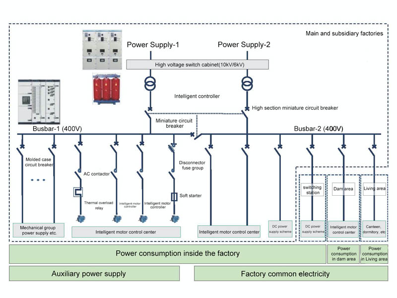 Zhegui Electric proporciona a los usuarios de centrales hidroeléctricas aparamenta de media tensión (6-35 KV) en el lado de generación de energía, aparamenta de 0,4 kV para uso de la estación, sistema de CC y transmisión de energía relacionada, generación de energía, instalación de equipos de distribución de energía y contratación general de construcción, integración de sistemas. , gestión de eficiencia energética, etc., y puede proporcionar servicios relacionados, como diseño en profundidad de esquemas de diseño de sistemas personalizados, integración primaria y secundaria según las necesidades del cliente.